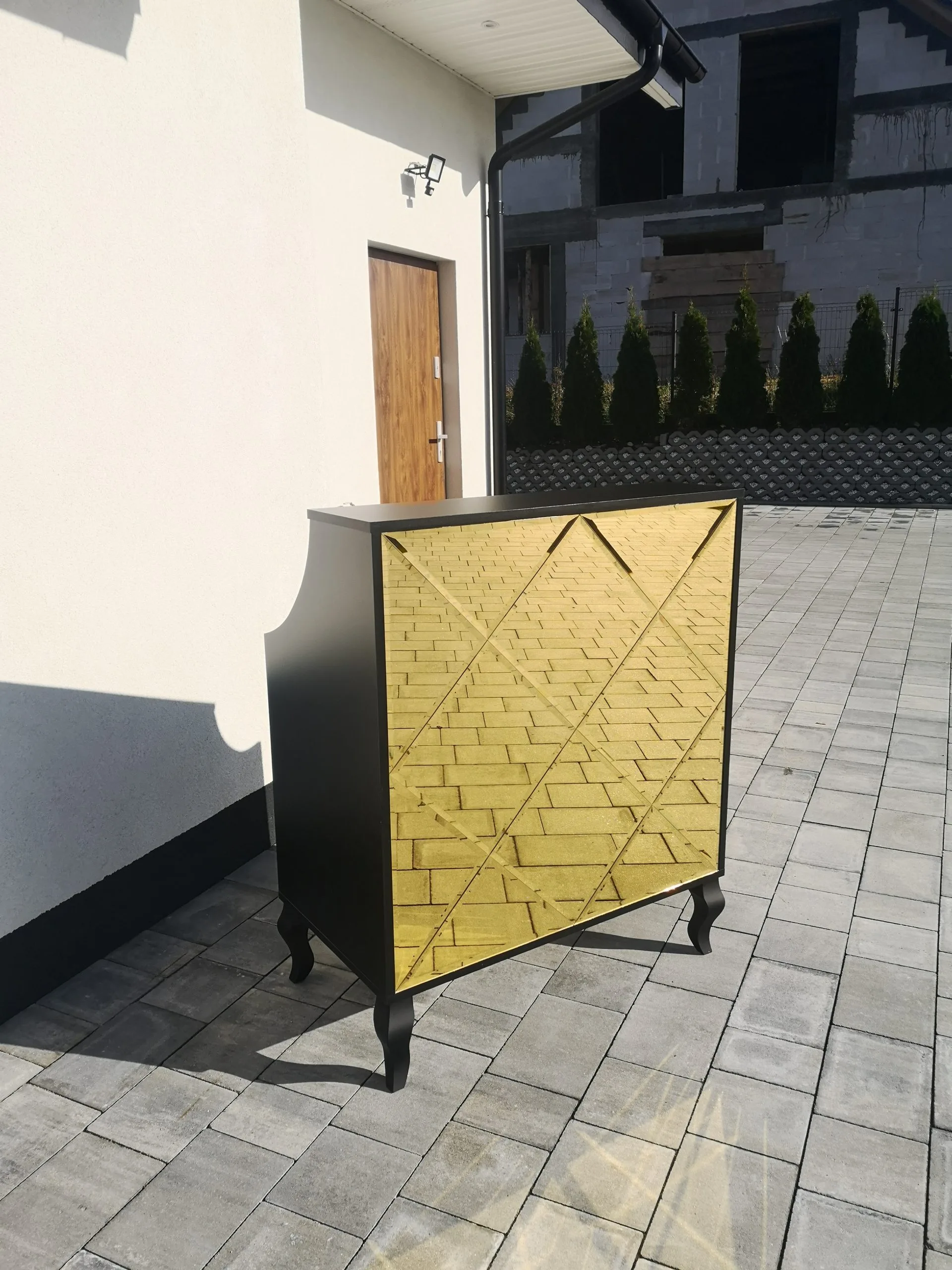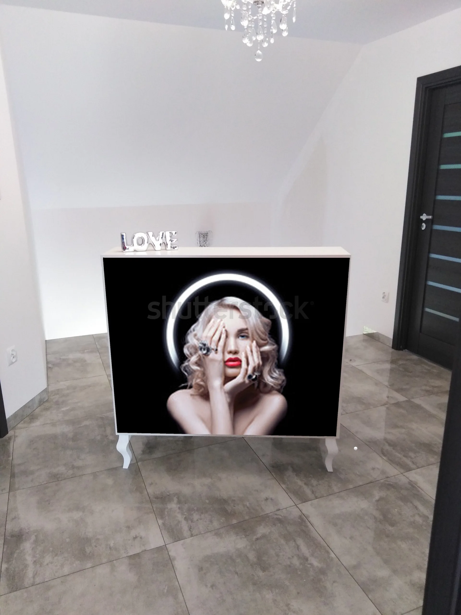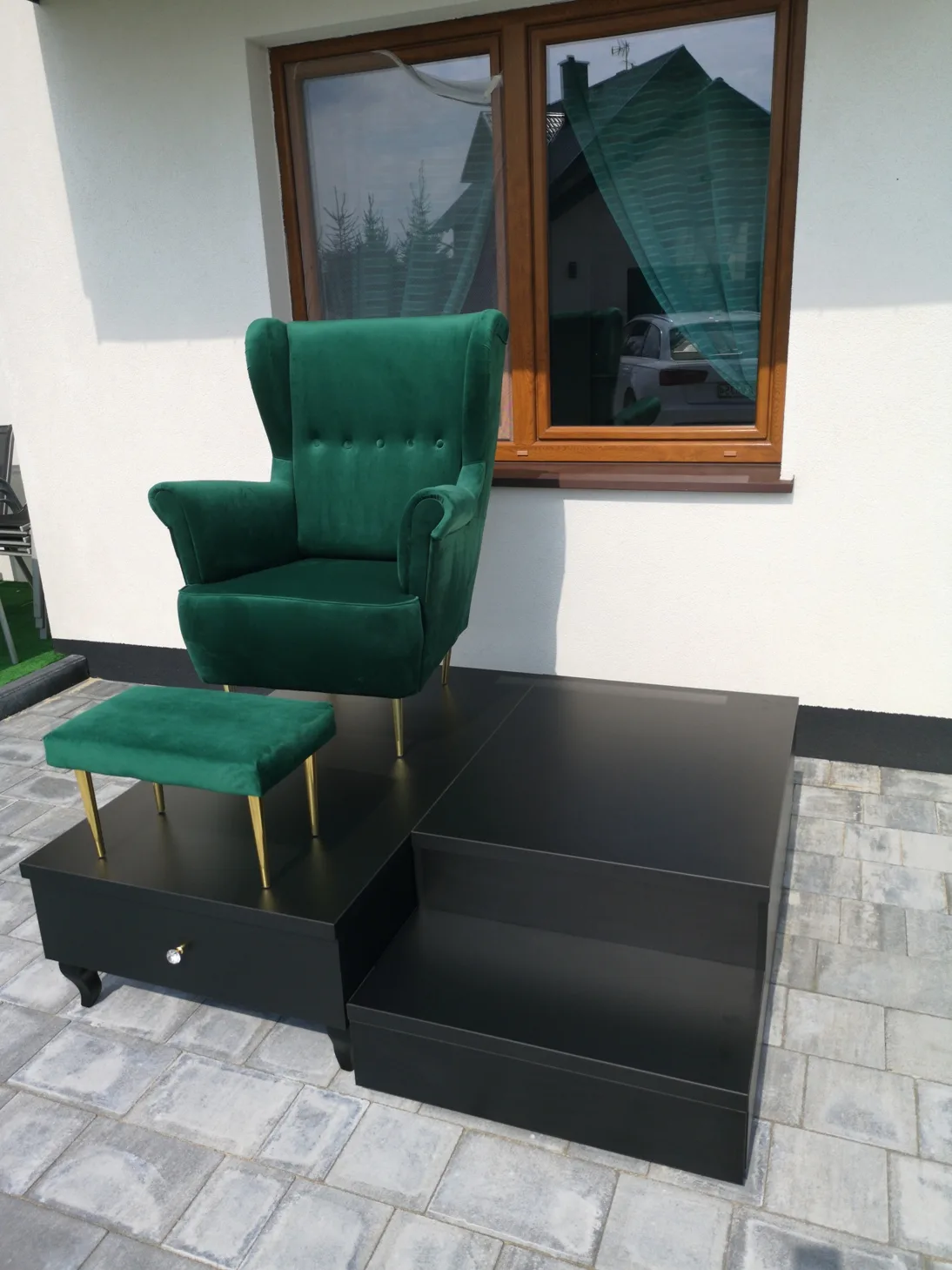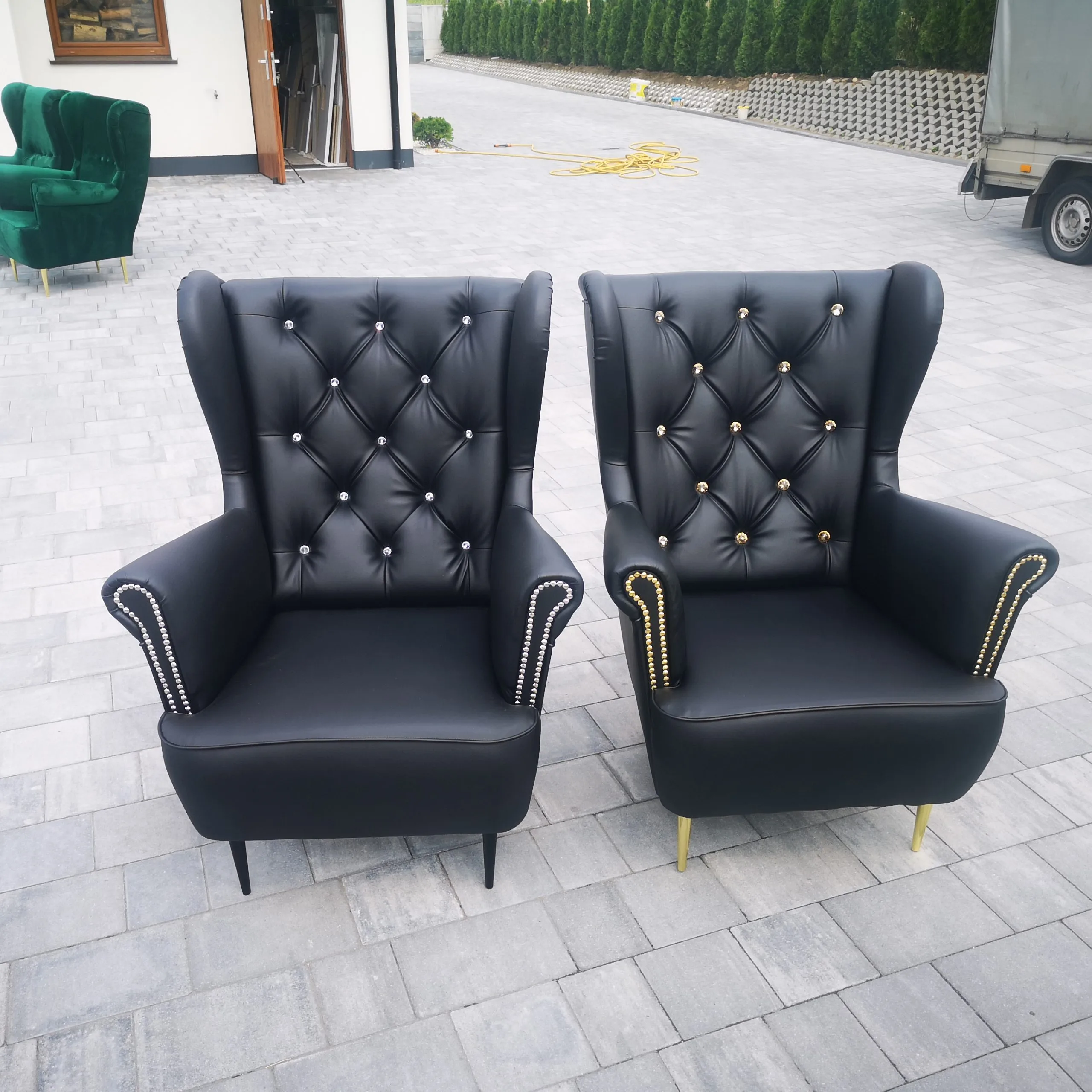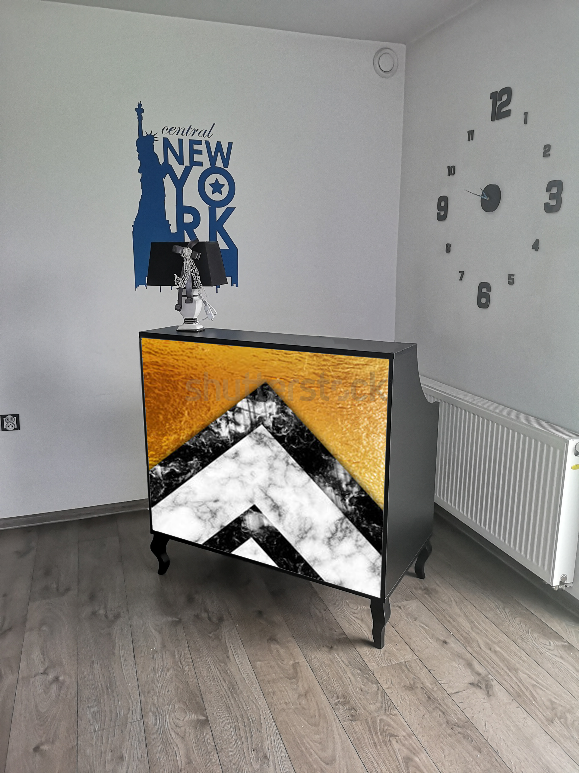 Uzupełnieniem wyposażenia są czarne komody, meble pomocnicze oraz czarne sofy, czrane fotele wykonywane na zamówienie.