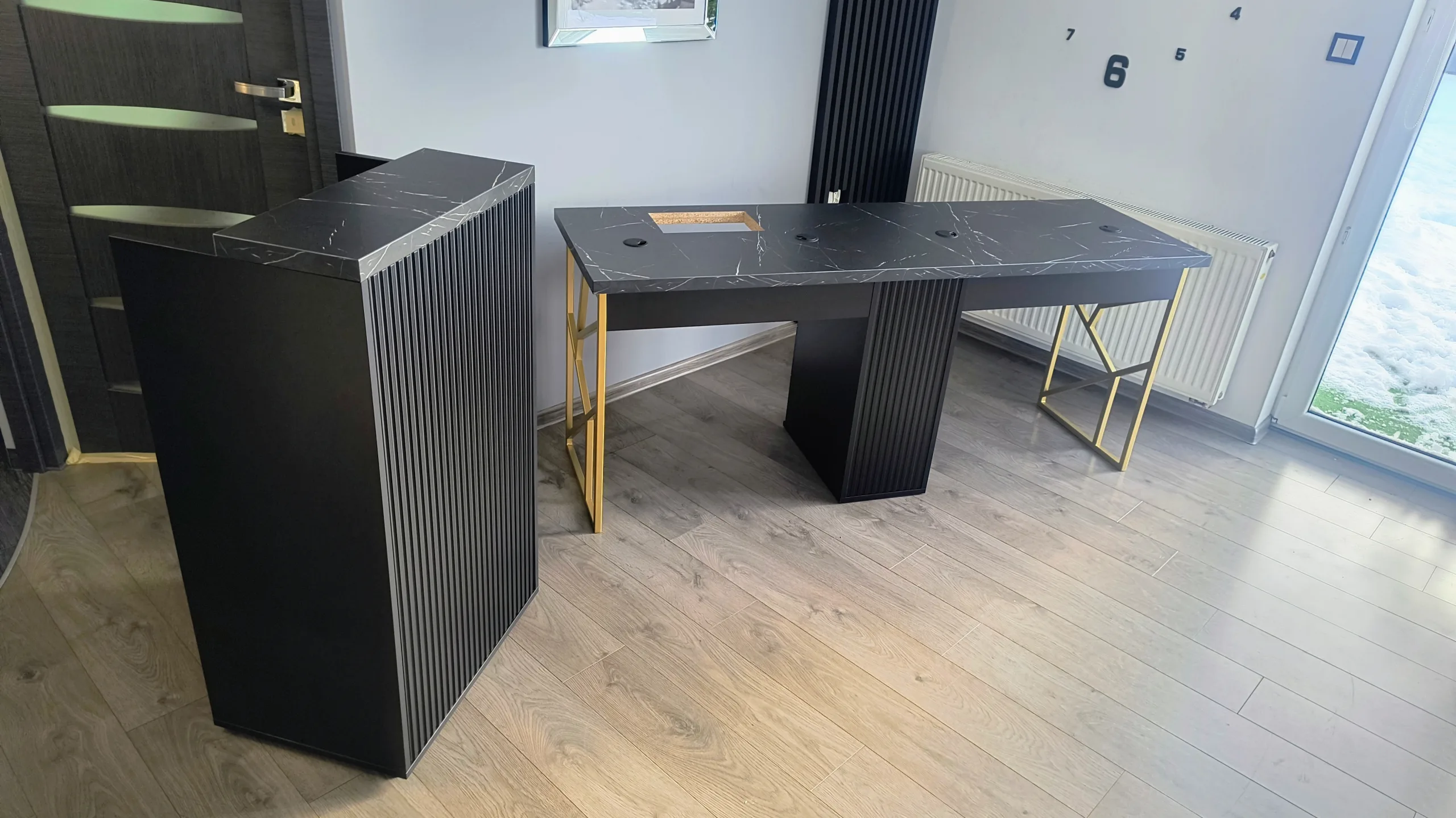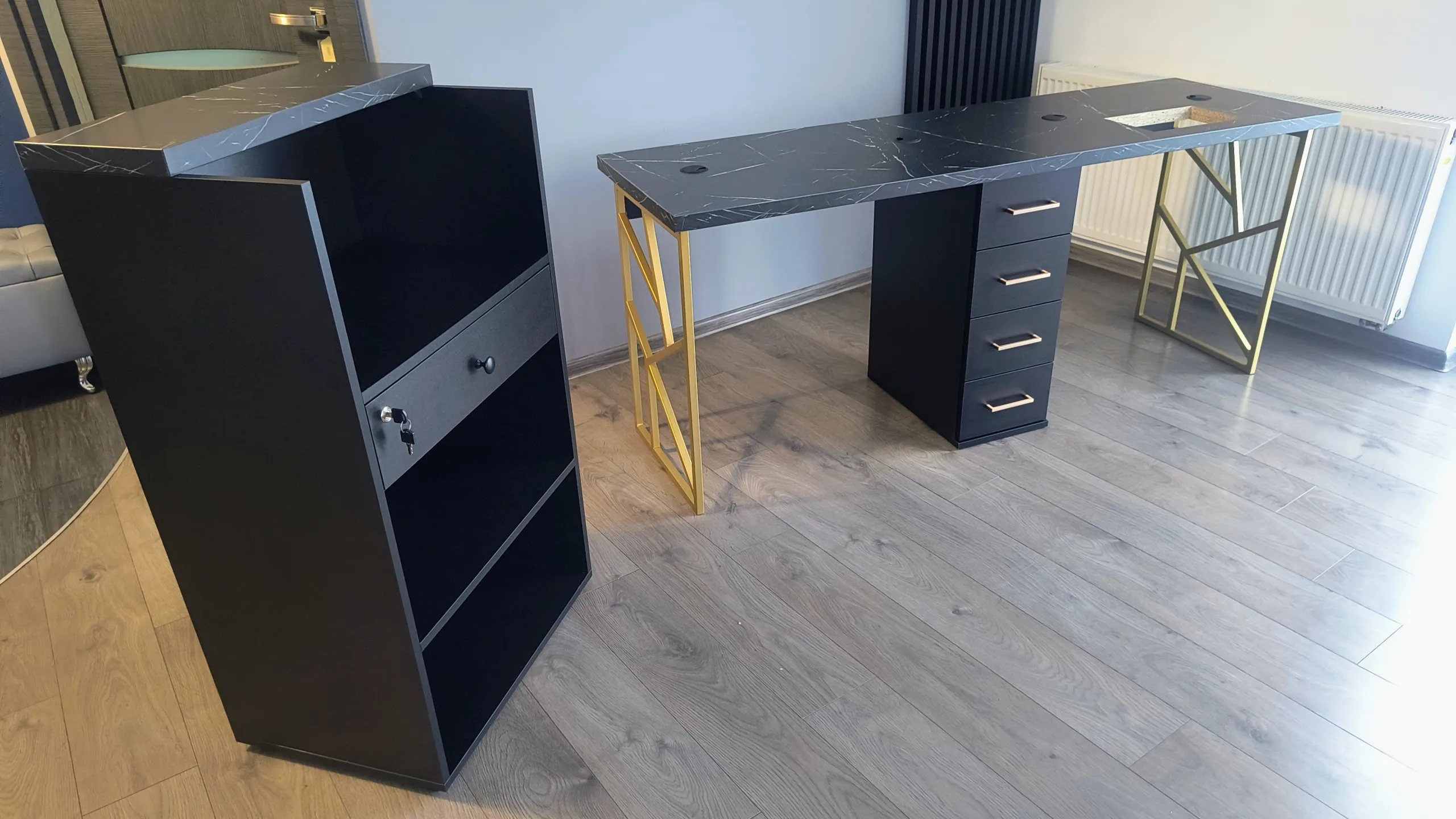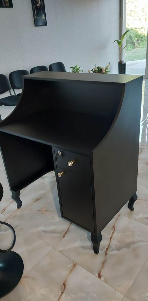 #czarna recepcja, #czarne biurko manicure, #recepcja czarna Czarne meble do salonu kosmetycznego, fryzjerskiego to wybór dla osób, które cenią elegancję, ponadczasowy design i profesjonalny wizerunek wnętrza.