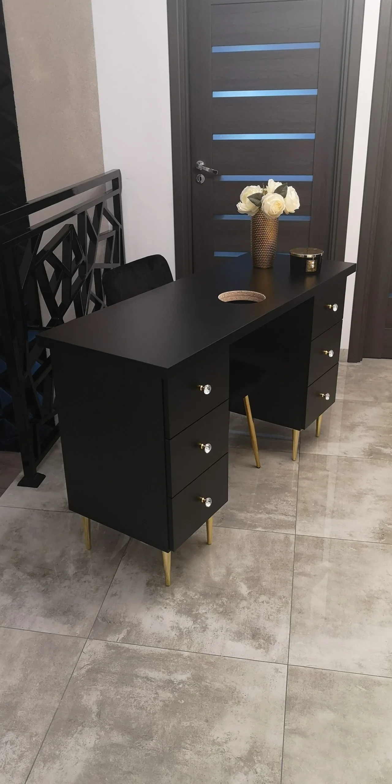 Czarne biurka kosmetyczne