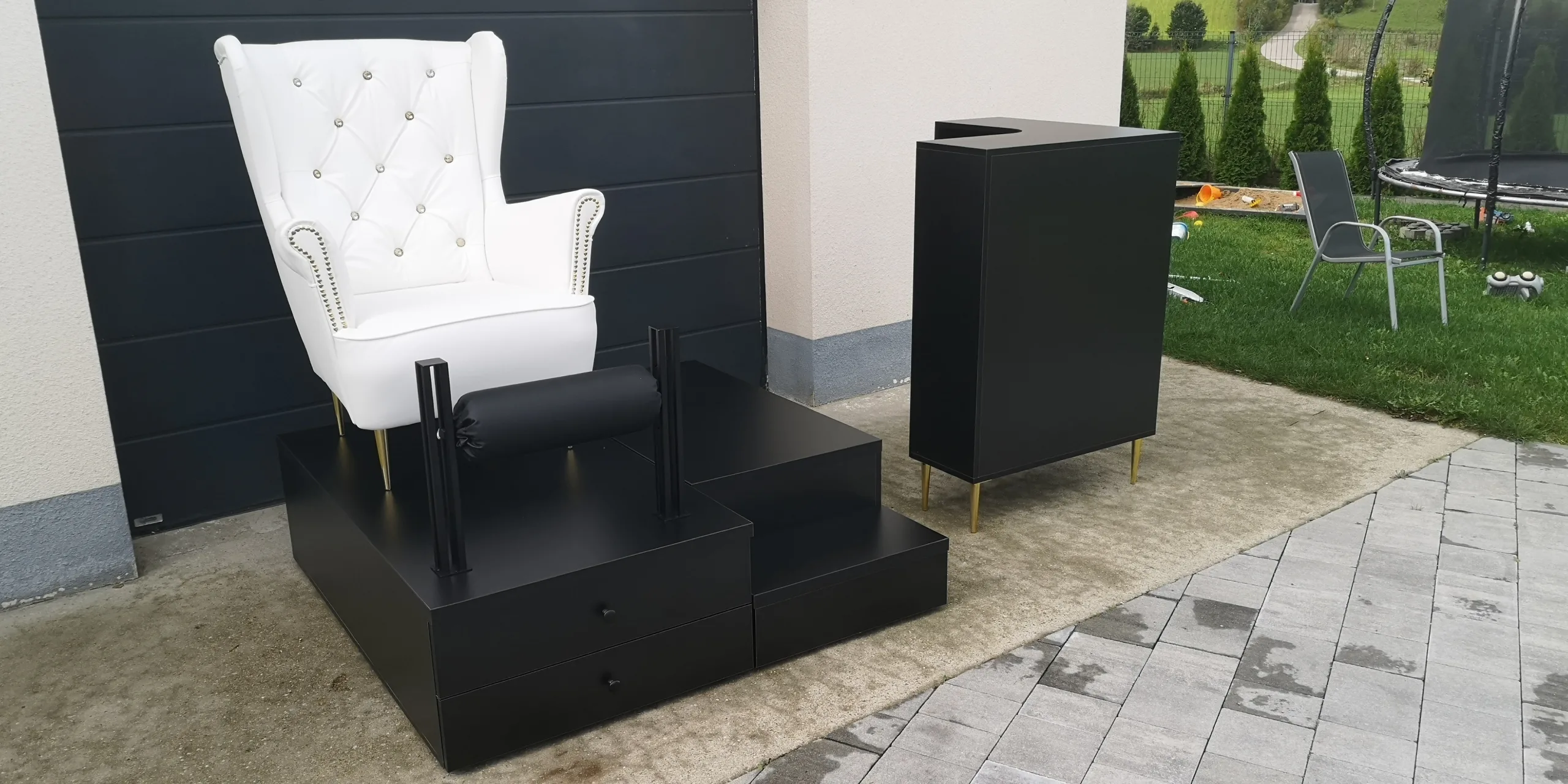 Wykonujemy podesty do pedicure w wersji niskiej, wysokiej oraz z wnękami. Sprzedajemy całe stanowiska do pedicure z fotelem, podnóżkiem lub wałkiem do pedicure.