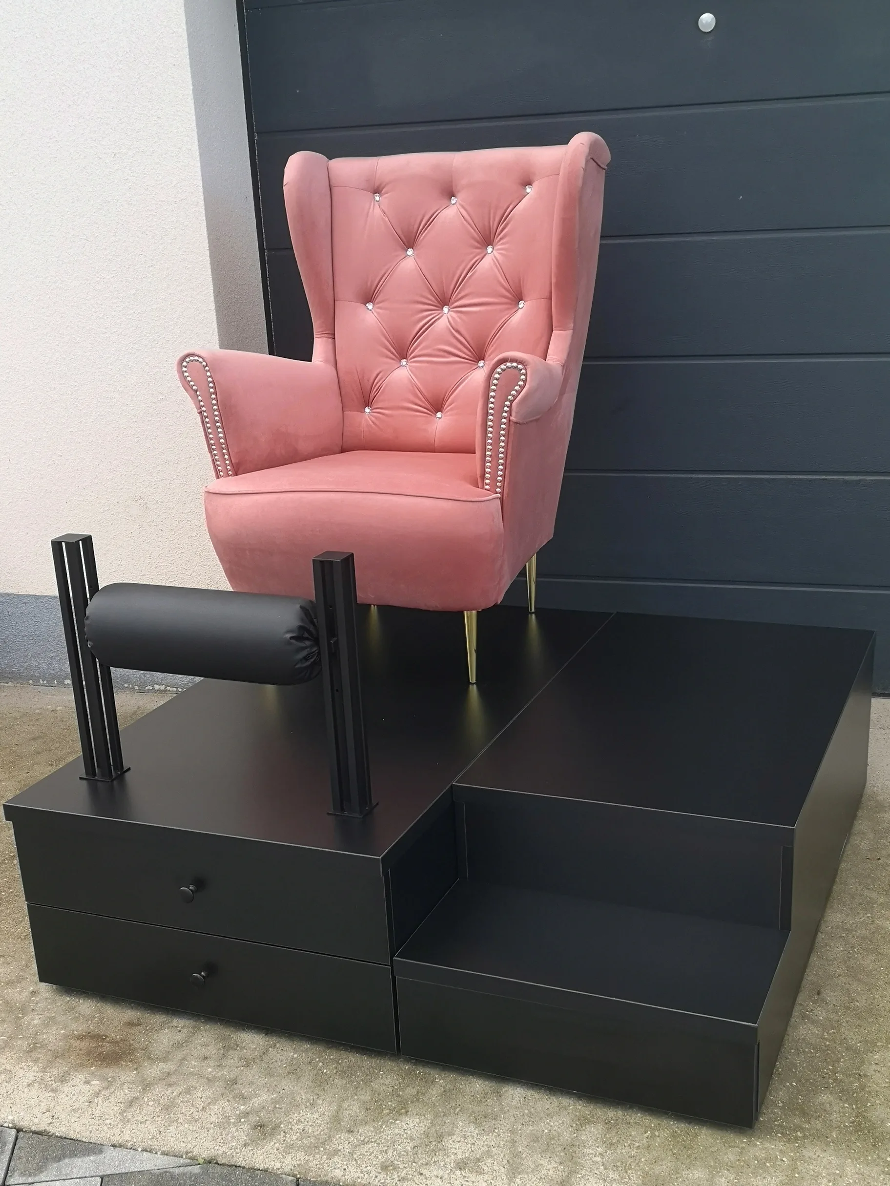 Czarne podesty i wałki do pedicure