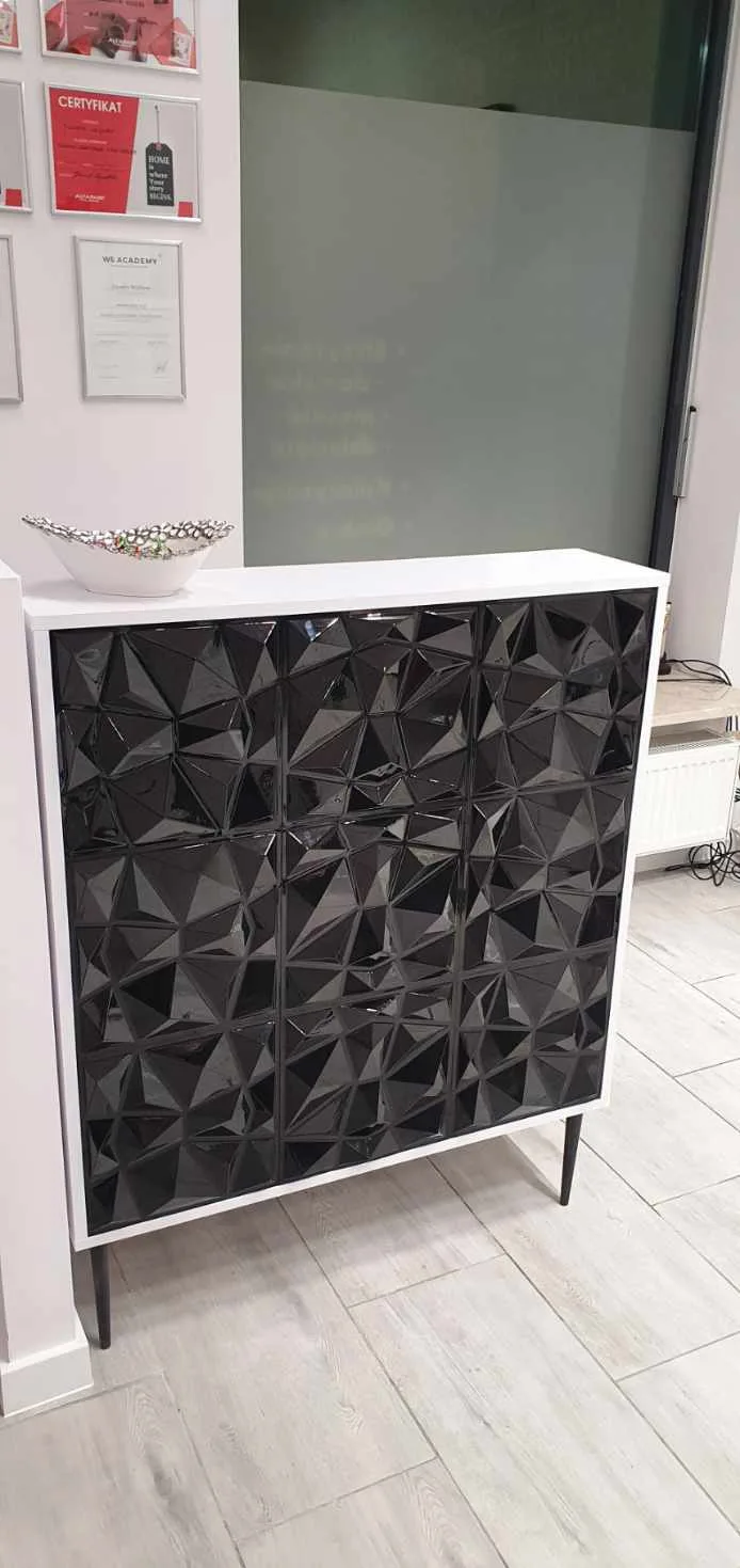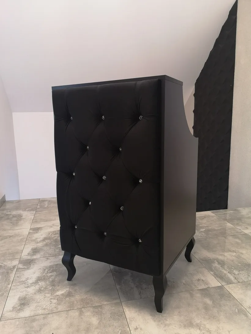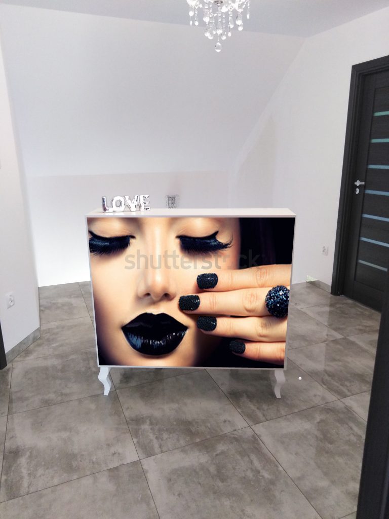 Czarna recepcja w stylu glamour do salonu kosmetycznego, fryzjerskiego i butiku. Poznaj pełną ofertę naszych mebli. Poniżej przedstawiamy galerie, gdzie można zobaczyć nasze realizacje w kolorze czarnym – od recepcji czarnej, przez podest do pedicure czarny, komody czarne i czarne biurka kosmetyczne.