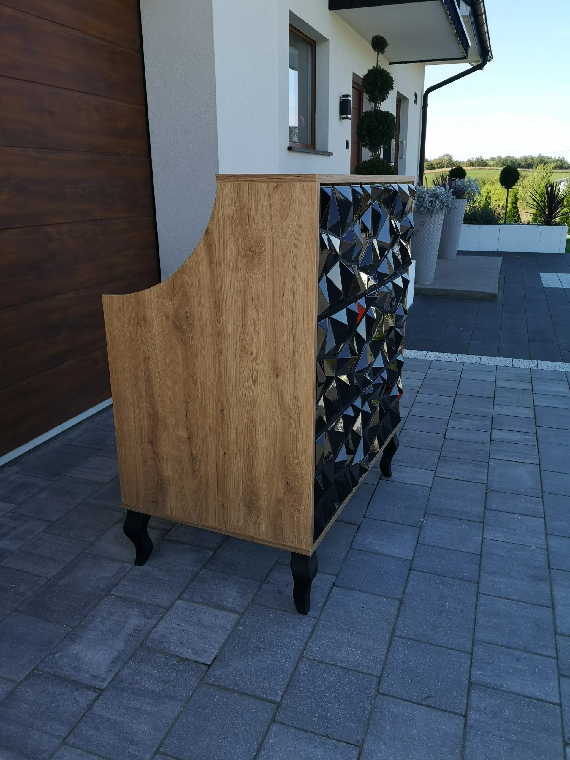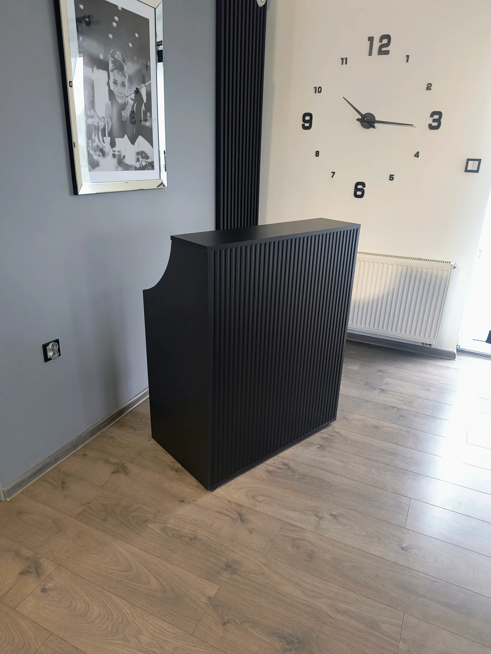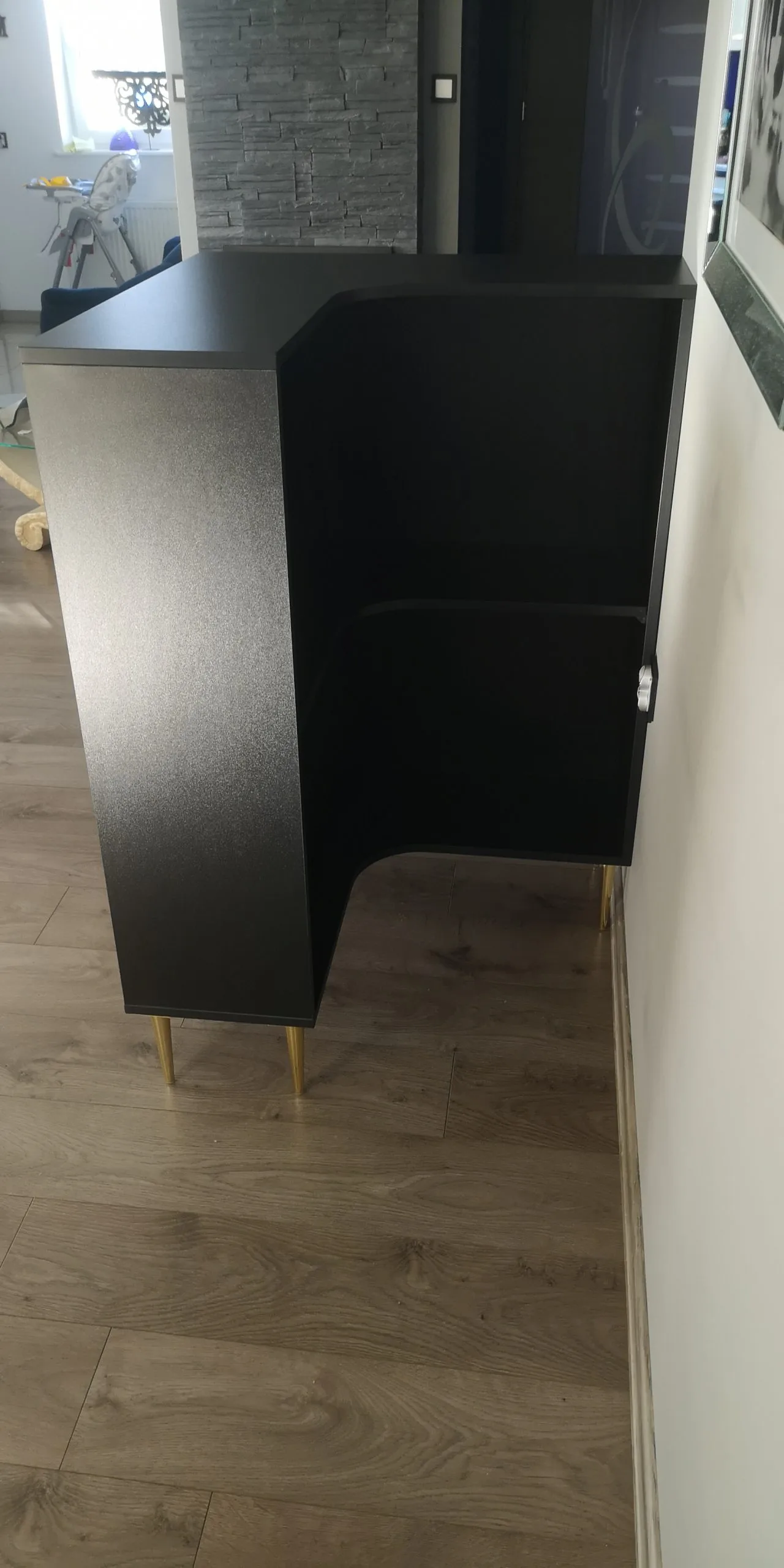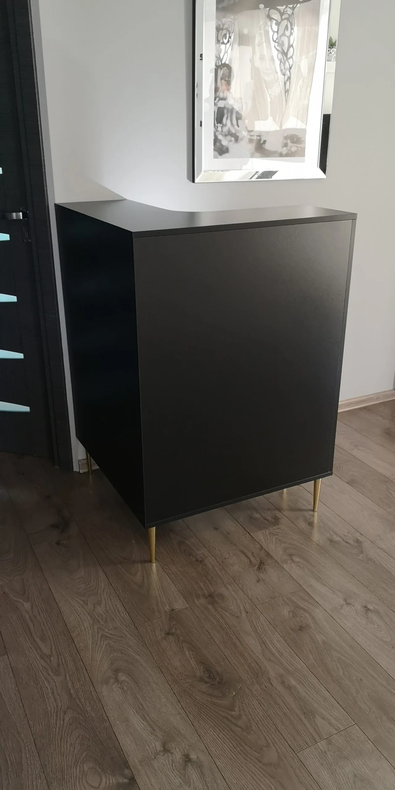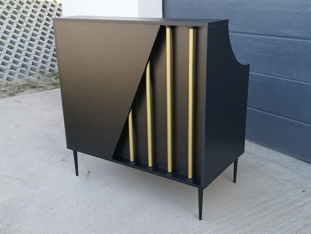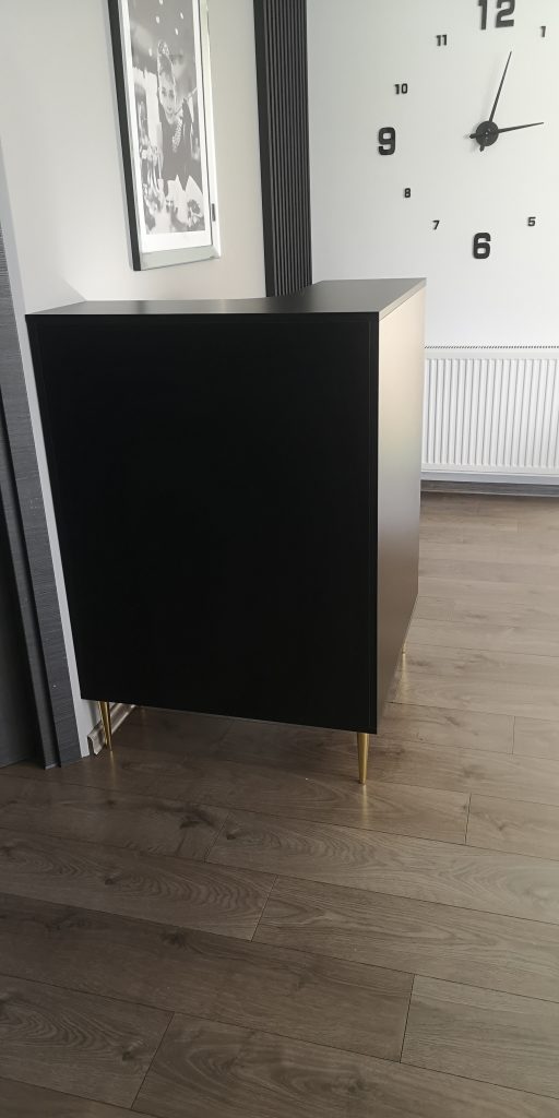 • meble wykonane w tym samym odcieniu czarnej płyty meblowej